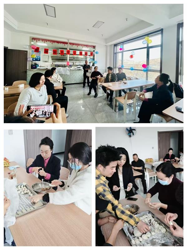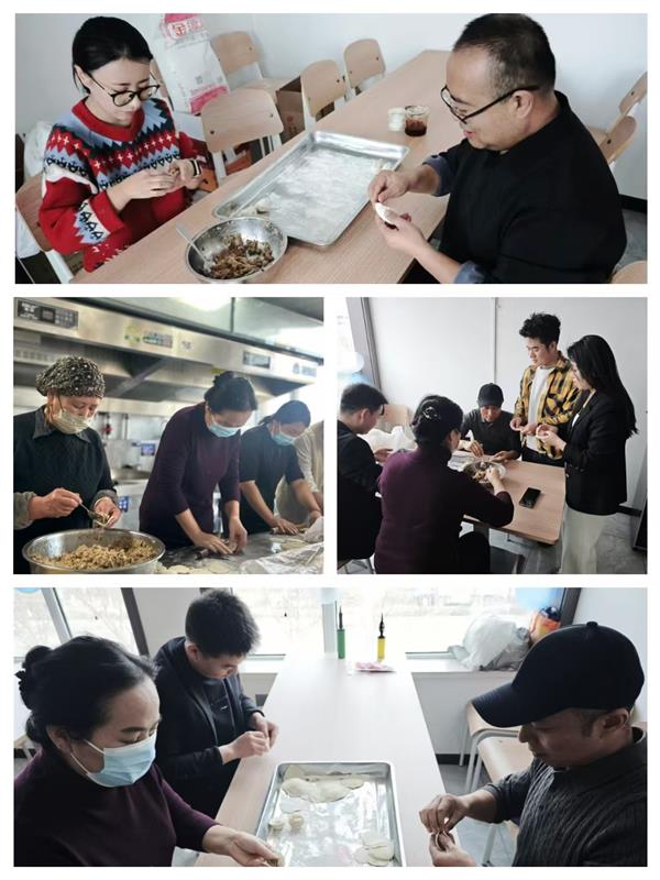 集團領(lǐng)導(dǎo)班子成員也一同加入到包餃子的行列中,一邊包餃子一邊與年輕員工分享冬至習俗:“冬至不端餃子碗,凍掉耳朵沒人管。今天咱們多包點,讓每個人都吃得暖暖和和!”